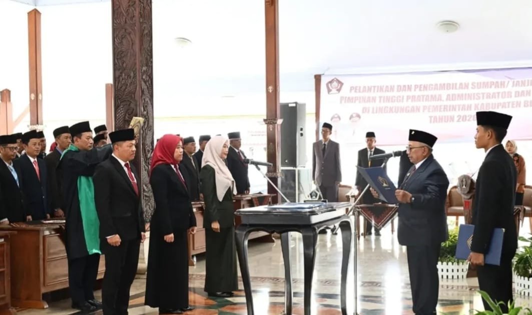 BLITAR, 3detik.com – Bupati Blitar Drs. H. Rijanto, MM secara resmi melantik dan mengambil sumpah/janji Jabatan Pimpinan Tinggi Pratama, Jabatan Administrasi, dan Jabatan Pengawas di lingkungan Pemerintah Kabupaten Blitar Tahun 2026. Acara pelantikan berlangsung di Pendopo Ronggo Hadinegoro, Rabu (14/1/2026).