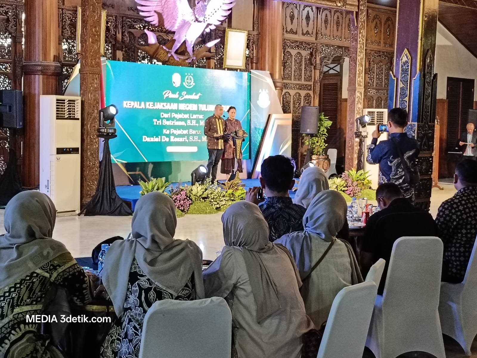 TULUNGAGUNG, 3detik.com – Pemerintah Kabupaten (Pemkab) Tulungagung menggelar acara penyambutan Kepala Kejaksaan Negeri (Kajari) Tulungagung yang baru, Daniel De Rozari, di Pendapa Kongas Arum Kusumaning Bangsa, Kamis (6/11/2025) malam. Daniel resmi menggantikan Tri Sutrisno yang kini menempati tugas baru di luar daerah.