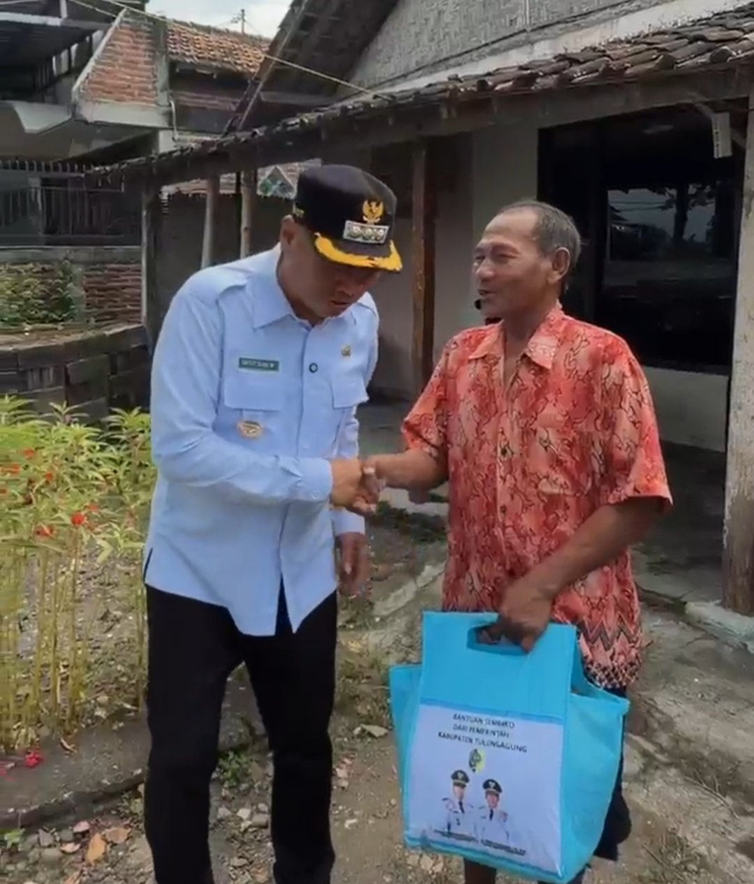 Bupati Tulungagung, Gatut Sunu Wibowo, turun langsung dalam kegiatan penyaluran bantuan ke masyarakat memenuhi kebutuhan pokok