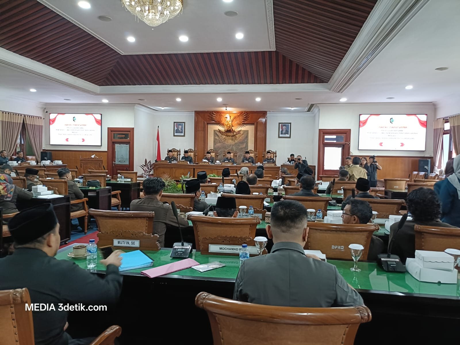 TULUNGAGUNG, 3detik.com – Rapat paripurna DPRD Kabupaten Tulungagung yang dipimpin langsung oleh Ketua DPRD Tulungagung, Marsono, dan dihadiri Bupati Gatut Sunu Wibowo, Wakil Bupati H. Ahmad Baharudin,, Sekda H. Tri Hariadi, para Kepala OPD lingkup Pemkab Tulungagung, Camat, serta anggota dewan lainnya.